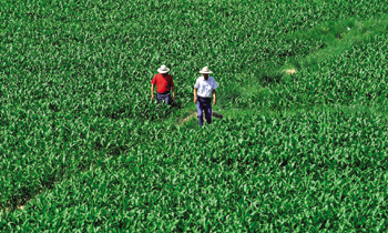 技術人員從張掖市甘州區成片的制種玉米中走過。本報記者 韓傳號