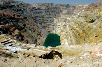 北出白銀市區15公里,這座直徑千余米的巨型大坑,是白銀公司昔日的露天銅礦采場。