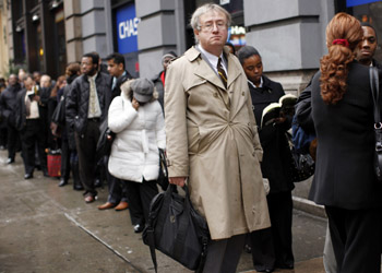 在美國紐約,52歲的埃里克·利佩斯在招聘會現場外排隊等候。新華社發 | 美國總統奧巴馬將于當地時間27日晚9時發表上任后的首次國情咨文,屆時美國的未來經濟發展規劃將公布于眾。目前美國失業率高達兩位數,奧巴馬的支持率面臨上任以來的低點,國內政策挑戰重重,醫療改革舉步維艱。奧巴馬帶領美國經濟的下一步走向如何,是否會推出第二輪經濟刺激方案,成為當下關注的焦點。 據悉,國情咨文中將包含凍結部門財政預算、扶助中產階級改善就業等信息。據傳奧巴馬還將公布新的一攬子經濟刺激方案,預計耗資1750億美元。不過,接受記者采訪的多位專家表示,美國經濟復蘇已取得成果,無須新的刺激方案,此次奧巴馬即將宣布的新經濟方案更多是為滿足其政治訴求。