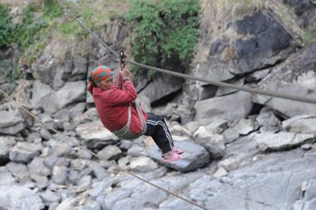 記者驅車從怒江州府所在地六庫鎮出發,沿著怒江一路北行,多次看到當地百姓溜索而過。福貢縣馬吉鄉旺基獨村村民阿起說,她是過江來買鹽的,如果不用溜索,要多走1個多小時。“我們大人過溜索很正常,但是小孩上學要單獨溜索,還是很危險的。”