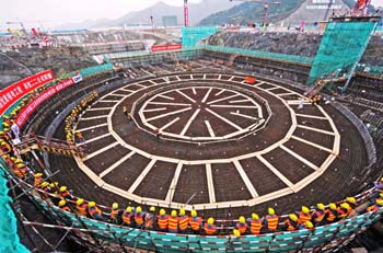 2009年12月15日,中國首個(gè)第三代核電自主化依托項(xiàng)目——中核集團(tuán)公司三門核電工程一期工程2號(hào)機(jī)組核島正式開工建設(shè)。這標(biāo)志著全球首座AP1000核電站建設(shè)進(jìn)入全面施工階段。新華社記者 譚進(jìn)/攝 |