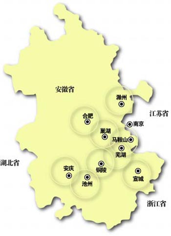 皖江城市帶包括合肥、蕪湖、馬鞍山、銅陵、安慶、池州、巢湖、滁州、宣城九市以及六安市的金安區(qū)和舒城縣,共59個縣(市、區(qū)),土地面積7.6萬平方公里,人口3058萬人,2008年國內(nèi)生產(chǎn)總值5818億元,分別占全省的54%、45%和66%。皖江城市帶是實施促進中部地區(qū)崛起戰(zhàn)略的重點開發(fā)區(qū)域,是泛長三角地區(qū)的重要組成部分,在中西部承接產(chǎn)業(yè)轉(zhuǎn)移中具有重要的戰(zhàn)略地位。 皖江城市帶處于我國人口密集、消費需求較大的最靠近東部的中部地區(qū),以合肥為中心,半徑500公里覆蓋上海、江蘇、浙江、河南、江西、湖北、山東七省一市,這一區(qū)域經(jīng)濟發(fā)展水平高,消費潛力巨大。 |