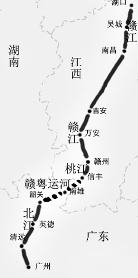 在2009年珠江航務管理局的規(guī)劃中,贛粵運河將自長江的江西省湖口縣起,穿過鄱陽湖入贛江,沿贛江一路向南過贛州市到桃江,過廣東和江西的交界處分水嶺,入廣東湞江上游的孔江水庫,然后沿湞江而下,經(jīng)南雄到韶關,再沿北江干流經(jīng)英德、清遠至三水河口,入東平水道到達廣州,全長1282公里,其中江西境內748公里,廣東省境內534公里。整個航道規(guī)劃為三級航道,通航1000噸級的船舶。 “這事實上是把京杭大運河向南延伸到了廣東,增加了一條南北的大通道!3月24日,珠江航務管理局珠江水系航運規(guī)劃辦公室副主任雍清贈在接受記者采訪時表示,從北京到廣東,這條運河將貫通黃河、淮河、長江、珠江等中國主要水系,對經(jīng)濟發(fā)展的促進作用不言而喻。 僅就廣東江西兩省而言,贛粵運河經(jīng)過的贛粵北、贛南、贛中都是相對較為貧困的老少邊窮地區(qū),運河的建成帶來的經(jīng)濟溢出效益有望改變這些地區(qū)的面貌。雍清贈表示,當前廣東大力推進雙轉移戰(zhàn)略,將珠三角地區(qū)部分產(chǎn)能釋放到內地,從綜合交通體系考慮,內河航道運輸不暢顯然已經(jīng)成為實施這一戰(zhàn)略的瓶頸。 據(jù)估計,目前內河航道單位噸公里的運輸成本約為鐵路的1/2、公路運輸?shù)?/5。但江西到廣東的水運基本不通。若要從水路運輸,必須從長江出海,再從珠江口進入珠三角地區(qū)。贛粵運河建成后,距離縮短到1200多公里,而預計每年的運力將可達到1000萬噸,相當于新修了一條鐵路,而對環(huán)境的影響、土地資源的占用等都遠小于鐵路。 雍清贈還列舉了灌溉沿途缺水地區(qū)、減少北江的防洪壓力、增加水利發(fā)電等好處,“京杭大運河那么古老的運河經(jīng)過整治,現(xiàn)在發(fā)揮了很大的作用?梢韵胂筅M粵運河如果修通了,對經(jīng)濟的影響有多大。”