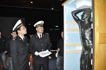 與“金色少女”一樣,許多國家的國寶級文物都遠渡重洋,聚集上海世博會。其中法國奧賽博物館價值超過4億歐元的七件傳世珍品,一亮相就成了世博會的最大熱門,每天慕名來參觀的游客在烈日下排成長龍,蜿蜒不絕。七件展品包括米勒的《晚鐘》、馬勒的《陽臺》、梵高的《阿爾的舞廳》、塞尚的《咖啡壺邊的婦女》、博納爾的《化妝間》、高更的《餐點》以及羅丹的雕塑作品《青銅時代》,都是稀世的藝術珍品。 “太難得了,(這個是)必須的,排再長的隊也要看!”來自東北的李先生帶著一家人排在長長的隊伍中,一邊擦汗一邊樂呵呵地說。 因為要開箱驗放,上海海關關員湯新成為世博會第一時間看到七件法國“寶貝”的“幸運兒”之一。“能這么近距離接觸到價值連城的藝術珍品,真的很幸運,也很自豪。當然,心里也有一點緊張,畢竟,這些展品價值超過前期園區所有展品的價值總和。”湯新說。為保護這些稀世珍品,海關驗放工作不再單獨進行,而是穿插在整個布展過程中,“整個開箱過程都是由專業物流人員在文物專家的指導下進行,對溫度、濕度要求很高。專家們對展臺進行反復測量,對掛畫的順序也非常講究,”因此,這次驗放格外漫長,差不多從上午10點到下午五點左右才結束。“一個上午才放好一個雕塑”。下午三點多,工作人員打開第一個存放畫作的木箱,小心翼翼地撥開五層保護墊,梵高的名作《阿爾的舞廳》露出全貌,驚艷全場。 “現場非常安靜,博物館的專家透過放大鏡,對畫作與樣本圖片進行比對,檢查畫作狀態,并確認真偽。”盡管帶著手套,湯新并沒有像過去驗放貨物那樣親手接觸到展品。“雖然不是零距離,但能這么近距離經歷整個過程,實在太難忘了。”
