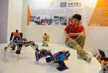 在北京舉行的第十屆科博會上,眾多最新科技成果及產品令參觀者大開眼界,特別是機器人的各種模仿表演吸引了許多小朋友的目光。新華社發(陳曉根/攝) |