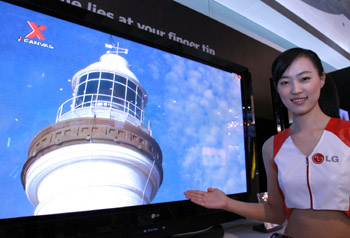 第九屆北京科博會上,工作人員在展示一款數字高清電視機。新華社記者 龐興雷/攝 |