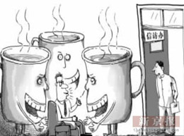 可讓上訪人心寒的是,前來解決問題的政府部門工作人員受到了信訪辦的熱情接待,人人有熱茶喝,而反映問題的老百姓卻一杯水都沒得到。(《重慶晚報》4月18日)