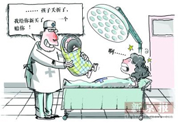 2006年2月,新疆一位年輕孕婦在昌吉市恒安堂醫院生產。由于醫生誤診,導致嬰兒出生即夭折、產婦大出血后切除全部子宮。事故發生后,醫院院長偷偷打來電話說買了個女嬰賠給他們。(4月24日《中國青年報》)