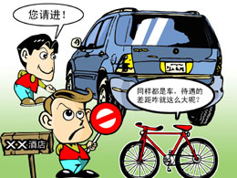 目前賓館酒店不讓自行車進,其實在全國是一個普遍的現象,賓館、酒店對自行車的歧視,說到底是社會嫌貧愛富心理的反映,自行車被認為代表貧窮,這種觀念根深蒂固后,才會形成這樣的“規矩”,才會有即使“兩會”參會委員,也可讓一個保安拒之門外的咄咄怪事。