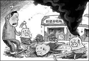 2月17日,河北武安市一非法鐵礦發生爆炸,造成24名礦工不幸罹難,5名礦工受傷。據悉,該非法鐵礦掛牌“特種野豬養殖場”,以其為幌子,想方設法逃避執法。但開采3年,當地執法部門卻一概不知。(《法制日報》2月20日)