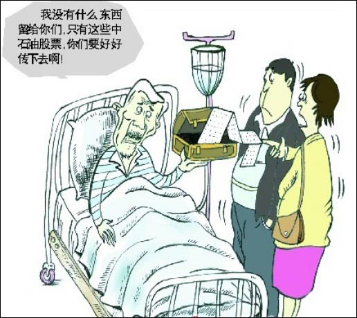 福建某股民張先生是個新股民,去年的10月份,在A股幾乎最高點時,張先生到一家證券營業(yè)部開了股票賬戶。幾天之后,中石油的網(wǎng)上申購開始了。不過很不幸,他的1萬多元沒有申購到中石油的股票。大約1個多星期后,中石油價格已經(jīng)超過了48元,他趕緊照著屏幕上“買入價”掛了出去。但沒想到,中石油的股票以后就一路下跌,如今,他的交易賬戶的市值已經(jīng)從5000元縮水到1000元出頭。倔強的張先生決定那賬戶上的中石油不回本就堅決不賣,無論需要多少年,甚至是留給自己的孫子也可以。
