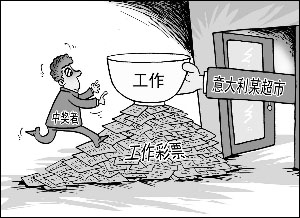 為幫助失業者,意大利蒂格羅斯公司旗下59家連鎖超市推出工作彩票,中獎者將獲得一份超市工作機會,月薪最高可達1200歐元(約合1711美元)。預計工作彩票將發出70萬張,公司計劃拿出10個工作機會。
