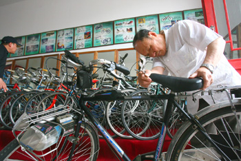 被譽為“自行車收藏大王”的72歲老人王明璽,帶著他的140余輛稀奇古舊的自行車,近日正式落戶北京豐臺區南苑村中國民俗旅游文化街內,這位古稀老人將在這里打造一個“自行車博物館”,以供市民免費參觀。