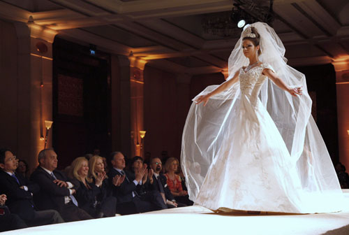 在約旦首都安曼舉行的一場(chǎng)慈善募捐時(shí)裝表演上,模特正在展示時(shí)裝。