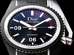 Dior Chiffre Rouge D02所搭載的Irreductible機芯由Zenith制造。這枚腕表獨特之處在于:一、黑色橡膠鑄模而成的316L精鋼,質感無可比擬的討好;二、右側極寬闊的表冠按把,除了有型有型以外,其實際用途在于確保腕表在深潛300米下仍安然無恙。