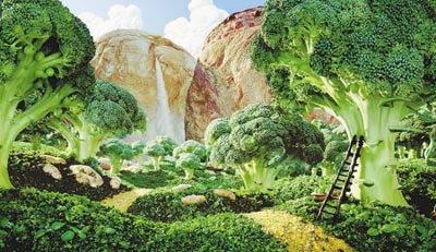 日前,英國攝影師Carl Warner開創了一種獨特的風景攝影形式:畫面所呈現的色彩和形狀都是用蔬菜和水果制作而成。他把這種特殊的藝術形式命名為“食物風景攝影”。他的作品因其獨特的創意、濃郁的夢幻氣息、別出心裁的構圖,讓人震撼。