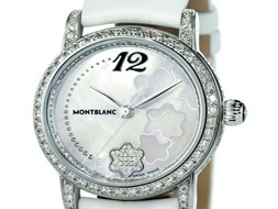 4810/103優質石英機芯,當機芯電池能量快將耗盡,秒針會一步跳5秒,提醒表主更換電池。 萬寶龍明星系列魔幻之星女裝鉆石表限量15枚,白金表背鑄刻限量編號,2010年秋季上市。另一款變奏為白金殼配黑色大溪地珍珠母貝表盤及黑色絲緞表帶,限量生產10枚。 另備兩款不銹鋼型號,分別為淺色表盤配棕色鱷魚皮表帶以及黑表盤配鋼鏈帶款式。兩款18K玫瑰金型號為炭灰表盤配黑色鱷魚皮表帶以及18K
