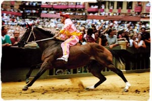 Siena)還是有驚無(wú)險(xiǎn)如期而至了。 作為意大利最負(fù)盛名的節(jié)日,歐洲最傳統(tǒng)的賽馬節(jié)、錫耶納賽馬節(jié)在每年夏季的7月2日與8月16日分兩次舉行。8月的這次比賽是當(dāng)?shù)厝藢?duì)圣母瑪利亞的獻(xiàn)禮,被命名為“Palio