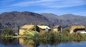600多年前,為逃避西班牙和葡萄牙的殖民統(tǒng)治,烏魯斯族人來到蘆葦叢生的湖上,依湖而居,從此成為這里的主人。 起初的烏魯斯人,用蘆葦、蒲草編成厚實的蘆席和蒲席,再編成草船,在船上生活。后來,他們把幾條、十幾條草船連在一起,成為更穩(wěn)定的住所,浮島就這樣出現(xiàn)了。隨后,他們又編出了精巧的房屋。現(xiàn)在,湖上的浮島有60多個,小的有籃球場那么大,大的竟設(shè)有郵局、小學(xué)等公共設(shè)施。 踏上秘魯?shù)牡目系母u,你會感覺天是那樣近。腳下松軟的蘆葦蒲,不時發(fā)出“吱吱”聲,訴說著在此繁衍生息幾百年的烏魯斯人的故事。湖面波光粼粼,穿著五顏六色民族服裝的土著,是島上最鮮活的景物。