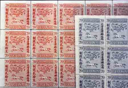 日前,由華郵有限公司舉行的“國(guó)寶級(jí)郵票珍品拍賣會(huì)”在香港灣仔舉行,清朝發(fā)行的“龍馬郵票大全張”拍出880萬(wàn)港幣的天價(jià)。1888年,清朝首任巡撫劉銘傳為使臺(tái)灣郵政事業(yè)正規(guī)化,特委托倫敦伯雷特威金生公司印制了兩種顏色、每幅25張的“龍馬郵票大全張”,其印刷質(zhì)量較高,圖案精美,存世量極少,具很高的收藏價(jià)值。 圖為“龍馬郵票大全張”一角。