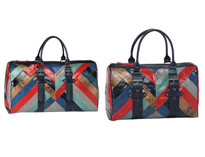 PATCH備有兩款手拿包。一款配有可拆卸式背帶,一款是頂端配拉鏈的長方形手拿包。懷舊味濃厚的蜥蜴紋、蟒蛇紋及鱷魚紋皮革,使這兩款晚宴包成為恒久時尚的單品。除了有耀目的多色款外,還有別致的黑色,增添一份神秘感。拼接皮設(shè)計亦延伸到Gloucester系列手袋,多色的不同紋理皮革,飾以藍(lán)寶石色皮革滾邊,再次成為Kate