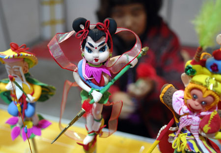 10月15日至24日,長春市舉行首屆收藏文化博覽會,博覽會以“繁榮收藏市場·弘揚傳統文化”為主題,來自巴基斯坦、印度、日本、韓國、阿富汗等國的展商,攜帶世界各地的奇珍異寶匯聚長春。本屆展會共設立展位近400個,展出面積達1.2萬平方米。 圖為博覽會上的泥人偶工藝品。