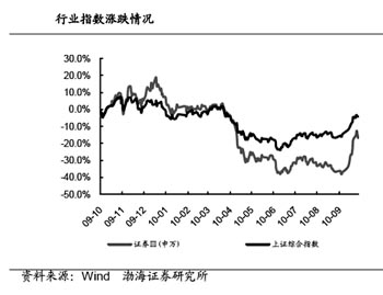 渤海證券發(fā)布的報告表示,進入10月份后,市場成交量逐漸放大,大盤最高點位超過3000點。我們認為人民幣升值和通脹預(yù)期下充足的流動性支持行情繼續(xù)看漲。考慮到目前證券行業(yè)仍處于估值底部、預(yù)期券商三季報整體業(yè)績表現(xiàn)良好以及基于第三批融資融券試點券商有望獲批的市場預(yù)期,我們維持證券行業(yè)的“買入”評級。我們看好宏源、華泰、東北、廣發(fā)、中信、國元和海通證券。