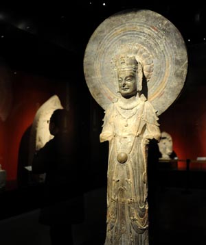 11月16日,位于濟南市的山東博物館新館舉行開館儀式,新館占地210畝,主體建筑面積8.29萬平方米,廣場約10萬平方米,收藏有歷史文物10萬余件,自然標本8000余件,藏書12萬冊,尤以陶瓷器、青銅器、書畫、甲骨、簡牘、漢化石像、古籍善本等收藏最具特色。新館展覽面積1.5萬平方米,展線總長約2000米,展出各類文物4500余件,涉及玉石器、青銅器、瓷器、書畫等20余個門類。 圖為山東博物館新館鎮館之寶之一、被譽為“東方維納斯”的蟬冠菩薩北魏佛教造像。