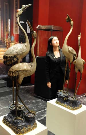11月26日至12月2日,香港佳士得拍賣行將在香港會展中心舉行2010年秋季拍賣會,拍賣會包括重要的中國瓷器及工藝精品、中國書畫、極品稀世佳釀、東南亞現(xiàn)代及當代藝術、瑰麗珠寶及翡翠首飾、精致名表等14場專場拍賣,將呈現(xiàn)2800多件珍品,預計拍品總估價超過17億港元(約2.2億美元)。 圖為一對“清雍正御制掐絲琺瑯雙鶴香爐”,估價1.2億至1.5億港元。