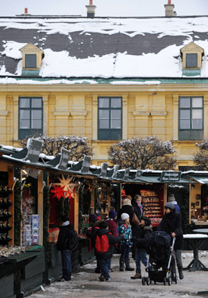 每年11月中旬,奧地利首都維也納市內(nèi)的20處大大小小的圣誕市場陸續(xù)開放,并一直開放至圣誕節(jié)前后,早早為整個城市營造節(jié)日氣氛,也成為市民和游客冬季休閑好去處。圖為孩子們在美泉宮圣誕市場游玩、購物。美泉宮坐落在維也納的西南部,曾是哈布斯堡王室的夏季行宮,總面積2.6萬平方米。這座氣勢磅礴的巴洛克風(fēng)格宮殿和花園,如今是維也納最負盛名的旅游景點。美泉宮及其花園已被聯(lián)合國教科文組織列入《世界文化遺產(chǎn)名錄》。