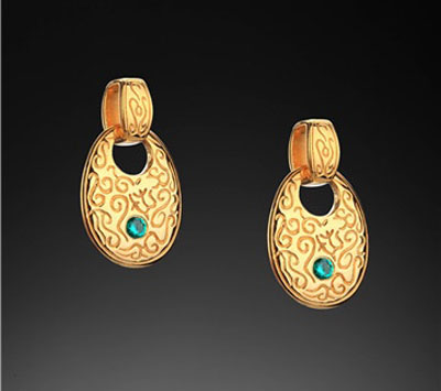 作品金屬采用銀鍍金雕刻唐草紋設計,中間鑲嵌彩色鋯石,猶如浩瀚銀河里的兩顆星星,是母親永遠的關注焦點,