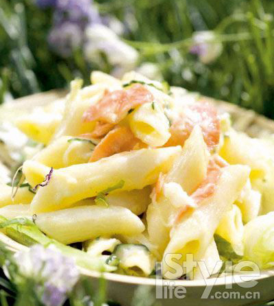 1.將面條用加些鹽和橄欖油的開(kāi)水煮熟后用涼水過(guò)一下。2.在不粘鍋中放些黃油,