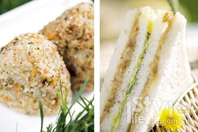 野餐的風(fēng)格很多,時(shí)下最流行的是低碳環(huán)保路線,可以自己在家做一些簡(jiǎn)單容易攜帶的食物,油炸、烘焙、涼拌的食物更加適合保存。比如三明治、壽司、沙拉、飯團(tuán)——彼得·梅爾曾經(jīng)說(shuō):美味的三明治是成功野餐的一半。而飯團(tuán),更是日本人野餐的最愛(ài),在櫻花盛開(kāi)的季節(jié),幾乎所有在櫻花樹(shù)下鋪開(kāi)一張漂亮花布的賞櫻者,都會(huì)帶上手工制作的美味飯團(tuán)。除了食物的烹飪方式,食材的選擇也很重要,就拿壽司來(lái)說(shuō),魚生類壽司很容易因?yàn)闀r(shí)間和溫度的原因變質(zhì),而熟食做的壽司就可以保留得更好。朋友聚會(huì)的話,不妨規(guī)定每個(gè)人帶一個(gè)菜,互相分享。