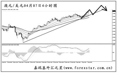 ▲澳元兌美元繼續(xù)創(chuàng)出新高,上升趨勢線再度下移調(diào)整。圖中均線系統(tǒng)的依托作用完好,澳元的強(qiáng)悍勢不可擋。由于上方已沒有任何可以阻擋住澳元的點(diǎn)位,所以目前預(yù)測此波上漲的頂部十分不明智。小時(shí)圖澳元的上漲斜率陡峭,應(yīng)繼續(xù)做多,但止損設(shè)置要嚴(yán)格,警惕匯價(jià)再度跌破趨勢線發(fā)起回調(diào)的風(fēng)險(xiǎn)。