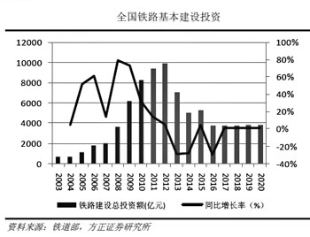 不過也有分析師提醒投資者,短期鐵路建設呈加速之勢,從長期趨勢來看,鐵路投資的峰值已經到來,這同時也意味著2012年之后鐵路投資的增速可能面臨回落。按照鐵道部中長期規劃,到2020年鐵路的運營里程達到12萬公里,這意味著未來兩年將完成未來十年工作量的64%。