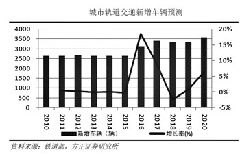 “十二五”規劃給鐵路等一系列軌道交通建設帶來巨大的投資機會。國家“十二五”規劃綱要明確提出“加快鐵路客運專線、區際干線、煤運通道建設,發展高速鐵路,形成快速客運網,強化重載貨運網。科學制定城市軌道交通技術路線,規范建設標準,有序推進輕軌、地鐵、有軌電車等城市軌道交通網絡建設”。隨著國家《中長期鐵路網規劃》的逐步實施,我國鐵路路網規模將進一步擴大。