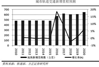 從2015年至2020年,全國地鐵建設將進入高峰期,地鐵運營里程將增長1倍。相比其他基建設施,地鐵的建設將在未來長期保持較快增速,同時地鐵大規模建設的時期將出現在2015至2020年間,其建設的生命周期明顯長于其他基建項目。