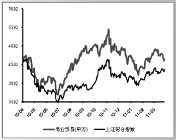 該券商發布的報告表示,長期來看,在擴大內需和通脹預期的背景下,商業貿易行業未來將持續受益于居民收入的快速增長。短期來看,食品價格繼續回落,汽車等非生活必需品消費回暖,同時宏觀調控政策進一步明朗,共同推動了3月份銀行卡持卡人消費信心指數(BCCI)的連續回升。新華·銀聯中國銀行卡消費信心指數(BCCI)顯示,2011年3月份的BCCI為86.72,環比上升0.68。