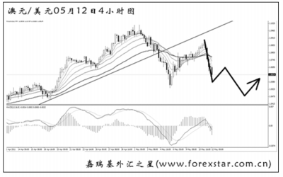 ▲澳元兌美元發(fā)力跌破了圖中的上升趨勢線,此后上行回調(diào),現(xiàn)在再度暴發(fā)出了強勁的下跌動能,可視為大C浪下跌。從A浪的幅度上看,此波下跌有望到達1.0400附近,會順便來考驗一下日線圖均線系統(tǒng)的依托強度。所以短線操作的思路就是等待回調(diào)之后順勢做空澳元,以小時圖道氏高點來設(shè)置止損位。