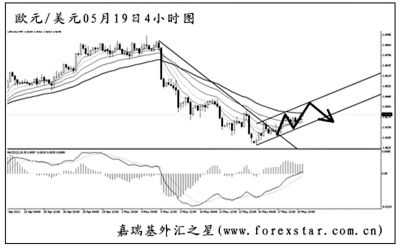 ▲歐元兌美元本周一直處于一個震蕩上調的節奏中,匯價沿通道運行平穩,目前正在遭遇均線系統的壓力。4小時圖道氏理論顯著高點在1.4340,突破方可打開進一步的上行空間。短線歐元仍有沖高的欲望,關注通道上沿1.4400一線阻力,預計歐元在此附近遇阻回落的概率較大。
