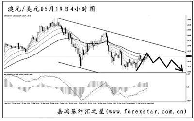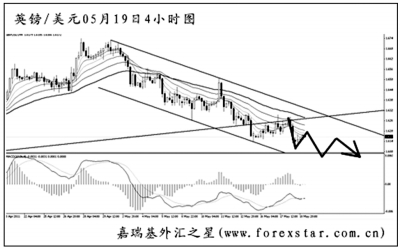 ▲澳元兌美元的大C浪下調基本結束,匯價小幅反彈,目前運行在一個下降通道之中。雖然澳元短線的下跌幅度較大,但從日線圖上看,均線系統仍然呈現向上的排列,現在就斷定澳元筑頂成功為時尚早。短線可以謹慎看空澳元,即使后市上沖,突破通道上沿的希望也并不是太大。