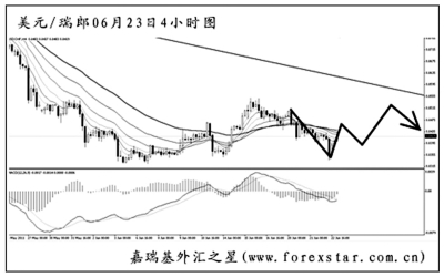 美元兌瑞郎的強勢有所收斂,短線在持續進行盤整。從大級別圖形上看,下降趨勢線和均線系統的壓制作用仍非常完好,反彈阻力重重。且即使突破了圖中的趨勢線,道氏高點的阻力0.8940也將發揮強勁的作用。考慮到瑞郎的持續強勢,目前做多美元兌瑞郎仍需謹慎。