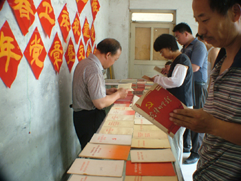 日前,河北省深州市收藏愛好者馮春衛在家中舉辦“光輝的里程——深州馮春衛慶祝建黨90周年黨章展暨文獻展”。新華社發 |