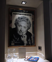 穿過彎彎曲曲的走廊,盡頭便是那間神秘的411號房間,房門上掛有阿加莎·克里斯蒂的名牌。推門進去,看到房間不大,有一張深色的大床,書桌上放著的舊打字機是阿加莎生前用過的,在酒店重張開業(yè)時,她的外甥特地從美國將打字機寄過來作為紀念品在這里展示。書桌的墻上還掛著克里斯蒂的大幅照片,黑白照片上睿智的女作家正冷靜地注視著這個世界。