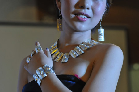 7月19日,一場別具民族特色的銀飾展示會在貴州省黔東南苗族侗族自治州凱里市舉行,模特登臺展示多款“苗族風(fēng)”銀制首飾與銀制工藝品,吸引眾多游客前來參觀。據(jù)了解,本次展示會還在現(xiàn)場進(jìn)行銀飾拍賣,所得款項(xiàng)將用于資助當(dāng)?shù)氐呢毨W(xué)生。圖為模特在凱里苗族銀飾展示會上展示銀飾品。新華社發(fā)