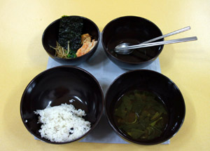 在沉默中,大家自取用來清潔餐具的清水、豌豆飯、腌菜湯和小菜。一切都有條不紊地按照順序進行,連餐具的清潔都有特定步驟。小菜包括辣白菜、涼拌菠菜、沙參和豆腐,各取所需,量非常少。最重要的是,每個人必須拿一小塊酸蘿卜。大家沉默地吃完,再倒上鍋巴湯,用酸蘿卜塊仔細擦拭干凈每個碗,將其連湯帶水全部吃完,最后用手巾一一擦干,重新套好歸位。從吃飯到洗碗,一次全部完成,真是綠色、節儉又高效。缽盂供養教給大家不浪費、自力更生的道理,是修行中不可或缺的一部分。