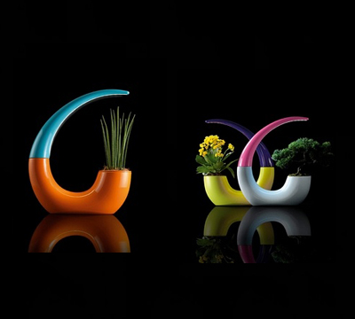 的這盞桌面燈具。號角形狀這盞臺燈設計,除了必須具有的照明功能之外,它還是一個可以用于種植盆栽的花盆。這兩者的結合,看上去似乎還蠻和諧的。