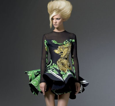 Versace(范思哲)是一個(gè)很神奇的品牌,在我們認(rèn)為它快要走下坡路的時(shí)候往往能有意想不到的好作品面世。而近年的高定更是佳品頻出,成為包括安吉麗娜·朱莉在內(nèi)等一線好萊塢女星的紅毯之選。這次的設(shè)計(jì)更是將立體剪裁的概念發(fā)揮到極致,通過材質(zhì)本身的硬挺度達(dá)到造型的目的。無論是作為新聞?lì)^圖的品牌裙(仔細(xì)觀看可以發(fā)現(xiàn)裙擺上構(gòu)成了兩個(gè)天鵝圖案),還是針刺鏤空皮質(zhì)的拖地長裙都令人叫絕同時(shí)隱隱帶有McQueen的昔日風(fēng)采。另外值得注意的是這次整體所注重表達(dá)的中國風(fēng),還有年輕化傾向(有的甚至可以列入副線的行列)。