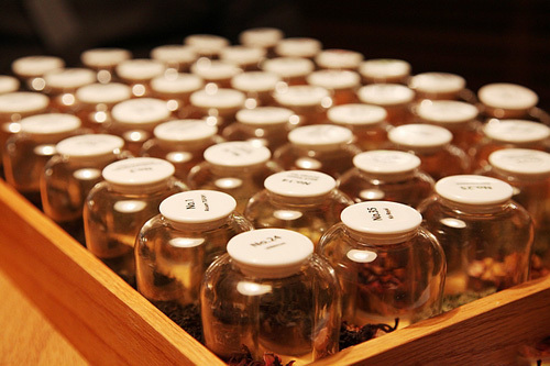 所有茶類在餐單上都有編號,你可以找出心儀茶品的編號,然后再從籃子里找出來聞聞。品茶這回事有時很難從文字上描繪出真正的感覺,直接體驗(yàn)實(shí)物會有更直觀的印象,這也是茶館貼心服務(wù)的體現(xiàn)。