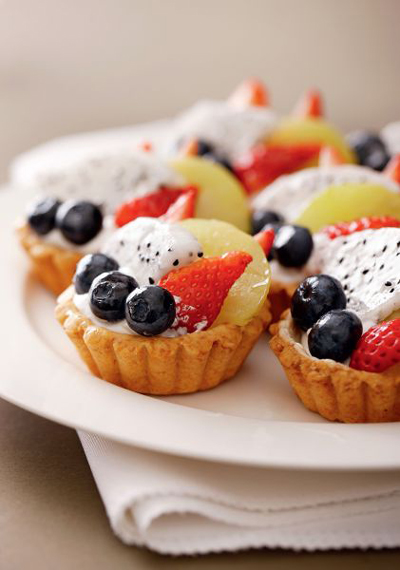 “水果撻當然要用新鮮水果做,千萬別為了耐放而用罐頭水果。”許師傅還說看撻皮與水果的接觸面便可知道餅師是否用心,“正常應該有一層白巧克力涂層,讓新鮮水果的水分不會流到撻皮去,撻皮才能保持香脆,而且多一種口感、味道。”偶爾也會有涂牛奶巧克力、黑巧克力的,“那是為了調口味,白巧克力雖然顏色較好配,但較甜,配草莓、獼猴桃較適合;若配水蜜桃、葡萄則用黑巧克力也可以。”